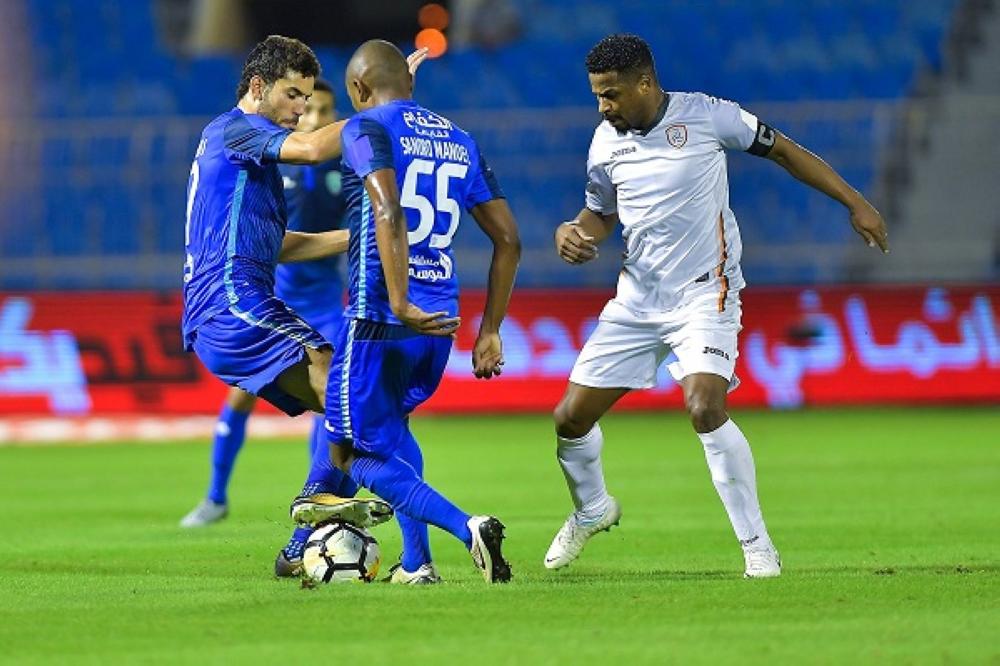 صراع على الكرة بين الشمراني ولاعبي الفتح