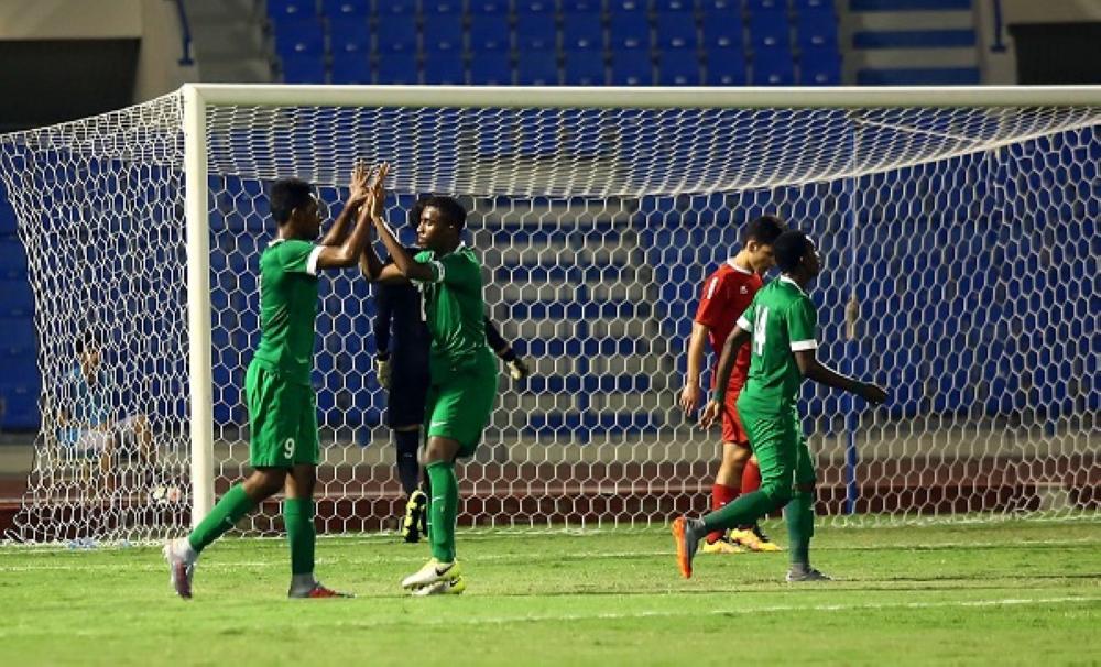 وسجل للأخضر الشاب منصور محمد هدفين في الدقيقتين 11 و20، وفراس البريكان في الدقيقة 35 من شوط المباراة الأول.