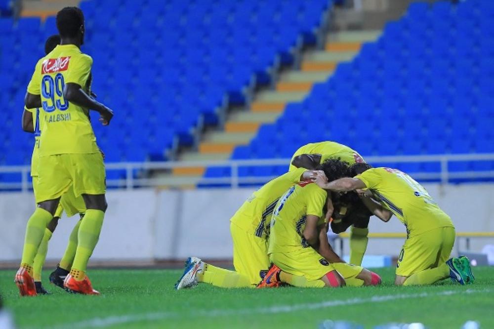 لاعبو التعاون يحتفلون بأحد الأهداف