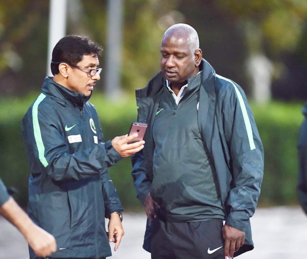 ماجد عبدالله وعمر باخشوين في حديث جانبي.