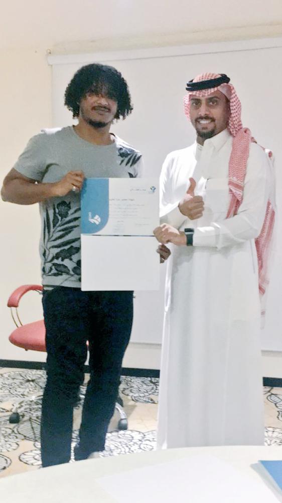 مشاري يحمل الشهادة التي حصل عليها.