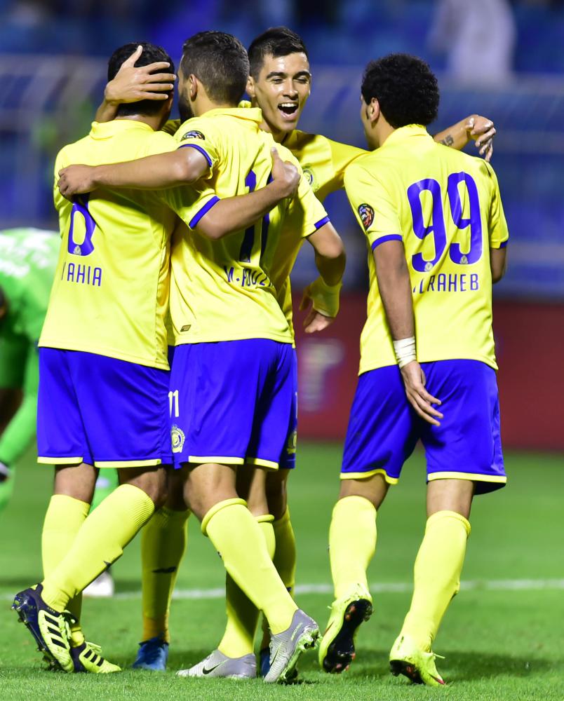 فرحة نصراوية بالانتصار على الفتح أمس في الرياض.