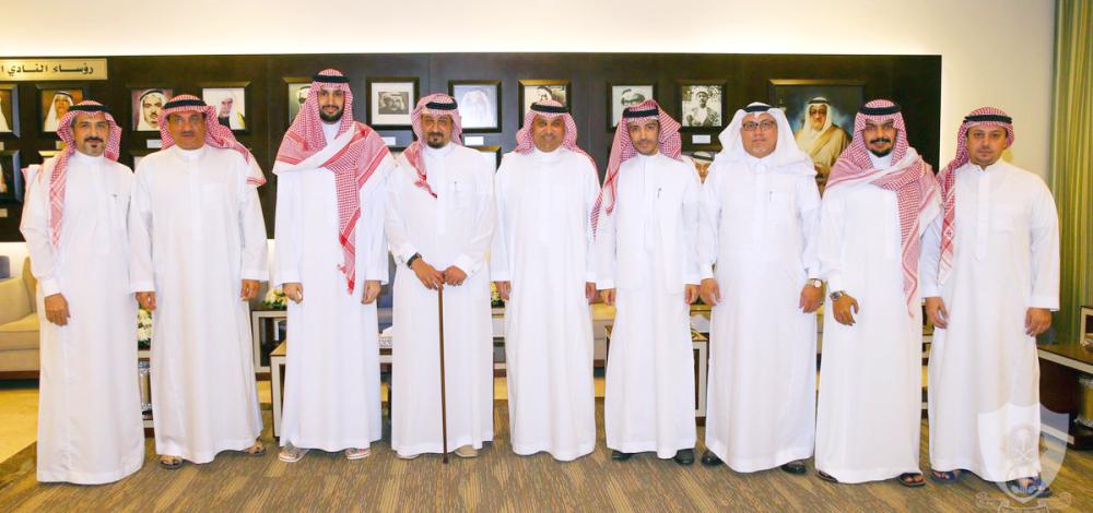 فاضل يتوسط رئيس الأهلي وأعضاء الشرف. (تصوير: المركز الإعلامي)