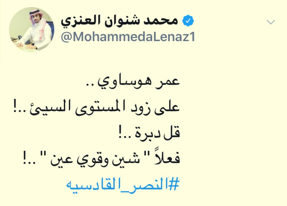 هاجم عدد من النقاد الرياضيين والإعلاميين المهتمين بالشأن النصراوي وجماهير النادي المدافع الدولي عمر هوساوي نتيجة الخطأ الذي ارتكبه في مباراة القادسية واصفين إياه بالخطأ الذي لا يغتفر، مطالبين بمحاسبته وألا يمر ما فعله مرور الكبار إذ قال طارق بن طالب: