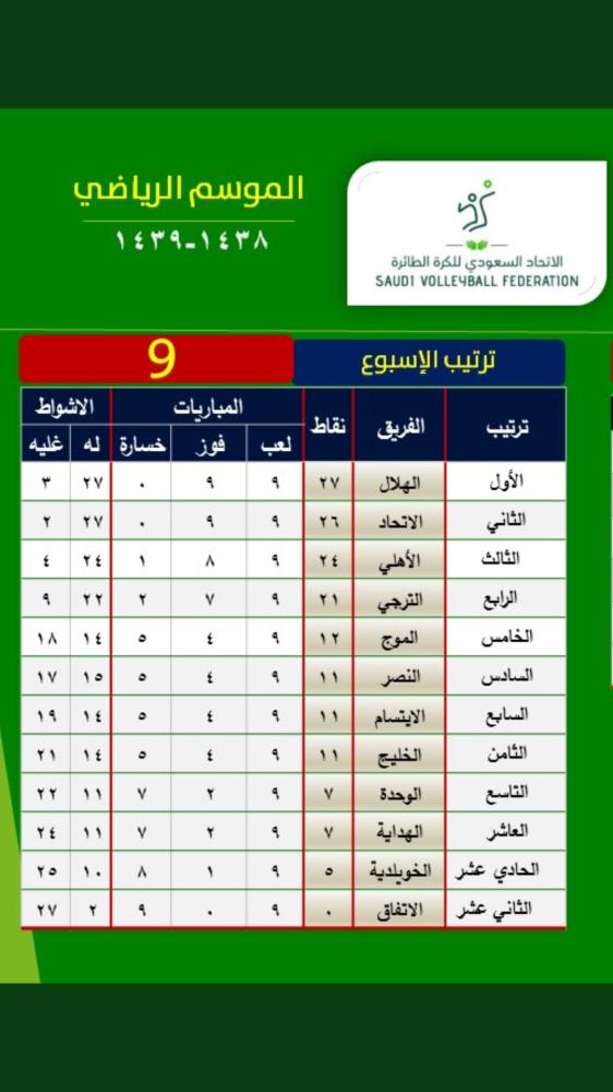 تقام اليوم (الإثنين) 4 لقاءات ضمن مباريات الدوري الممتاز لكرة الطائرة، أقواها المباراة التي تجمع الهلال والاتحاد، التي ستحدد مسار الصدارة، والفريقان لم يخسرا أي لقاء حتى الآن، فالهلال في الصدارة بـ27 نقطة، يليه الاتحاد (وصافة) بـ27 نقطة، والفائز سينفرد بالصدارة. الاتحاد يعيش نشوة فوزه على الأهلي في الدور الأول ويطمع في الفوز على الهلال وخطف الصدارة، والمستوى متقارب إلا أن خبرة الهلال ترجح الكفة لصالحه.