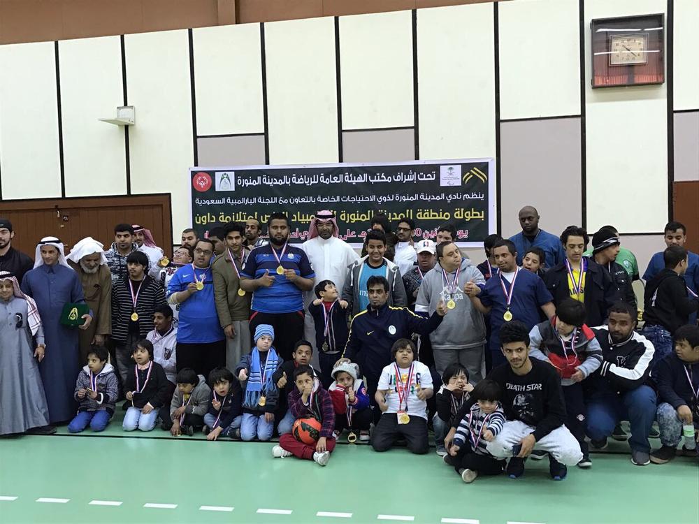 وأشار رئيس نادي المدينة المنورة لذوي الاحتياجات الخاصة المهندس يحيى سيف إلى أن هذه البطولة السنوية تعد الفريدة من نوعها التي ينظمها النادي وتشرف عليها الهيئة العامة للرياضة بالتعاون مع اللجنة البارالمبية السعودية، وأدار البطولة حكام معتمدون ومدربون لمثل هذه البطولات، داعيا أولياء الأمور لدعم هذه النوعية من البطولات بالحضور ومشاركة الأبناء لأن هذه البطولات ومثلها من البرامج هي إحدى ركائز العمل في النادي.