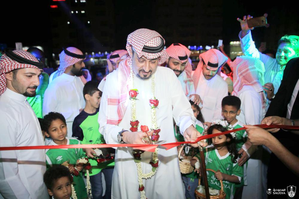 والتقى رئيس النادي ممثل السعودية (الراعي الرسمي للنادي الأهلي) مدير عام الدعاية والإعلان شكري الجديبي، إذ تسلم الأمير تركي إهداء عبارة عن مجسم لطائرات السعودية، بينما قدم الأهلي لمدير عام السعودية المهندس صالح الجاسر القميص الخاص بفريق كرة القدم الموقع من لاعبي الفريق ويحمل الرقم 72؛ الذي يرمز لعمر الناقل الوطني الخطوط السعودية.