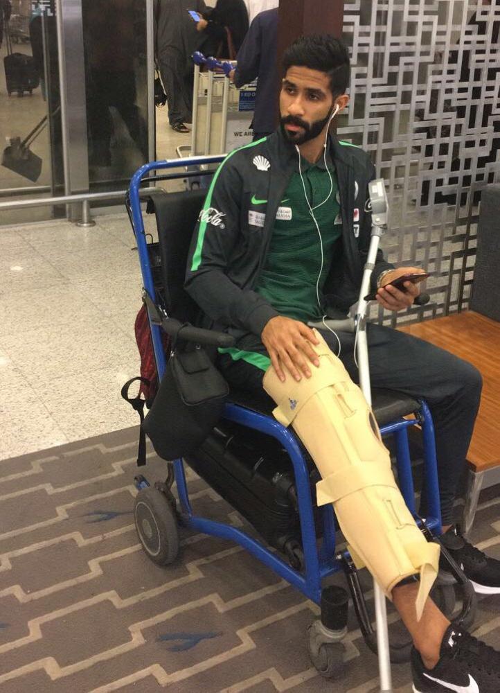 ونشر الحساب الرسمي للمنتخب صوراً تظهر المهاجم الهزاع في مطار الكويت الدولي استعداداً لمغادرته بعد ثبوت إصابته.