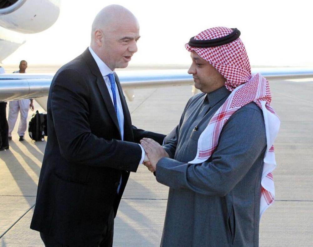 وقال: «زيارتا رئيس الاتحاد الدولي لكرة القدم لخادم الحرمين الشريفين الملك سلمان بن عبدالعزيز آل سعود ولولي العهد الأمير محمد بن سلمان بن عبدالعزيز جاءت لتعبر بوضوح عن التقدير الكبير الذي يحمله رئيس»الفيفا«للمملكة العربية السعودية، وما تضطلع به من أدوار كبيرة ومهمة على كافة الصعد، وما توليه قيادتها الحكيمة من اهتمام كبير بالرياضة».