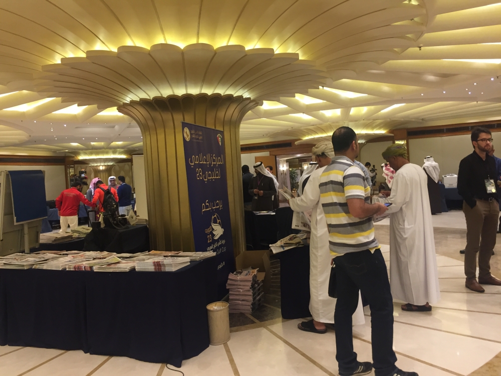 يعتبر المركز الإعلامي هو الواجهة التي تنقل الحدث والصورة إلى العالم الخارجي، والمركز الإعلامي في خليجي 23 تم تجهيزه بالكامل، ويعج يومياً بالعديد من الزملاء من جميع وسائل الإعلام الخليجية، ويقدم المركز الخدمات الإعلامية المقروءة والمسموعة والمرئية على مدار الساعة لجميع أعضاء الوفود الإعلامية، وتم تخصيص مكاتب لمختلف وزارات الدولة، سعياً منها لتوفير جميع متطلبات وحاجات الوفود وتذليل كافة الصعوبات.