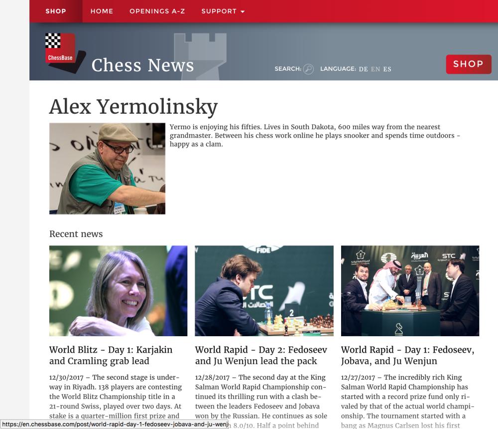وكتب بطل العالم السابق الذي حاز على بطولة الولايات المتحدة الأمريكية للشطرنج مرتين: «بطولة الرياض استطاعت أن تخطف أنظار محبي ولاعبي الشطرنج بجوائز البطولة المليونية، إضافة إلى تواجد عدد كبير من اللاعبين المصنفين على مستوى عالمي من أجل الفوز بالجوائز والتواجد في المحفل العالمي للشطرنج، والبطولة حملت العديد من المفاجآت المدوية، وأكبر مفاجأة خسارة المصنف الأول على مستوى الشطرنج النرويجي ماغنوس للقب منافسة الشطرنج السريع بعد أن فاز عليه الهندي أناند والذي توج باللقب بعد منافسة كبيرة بينهما وصلت إلى لعبهما لقاءات فاصلة بعد تعادلهما في المواجهات».