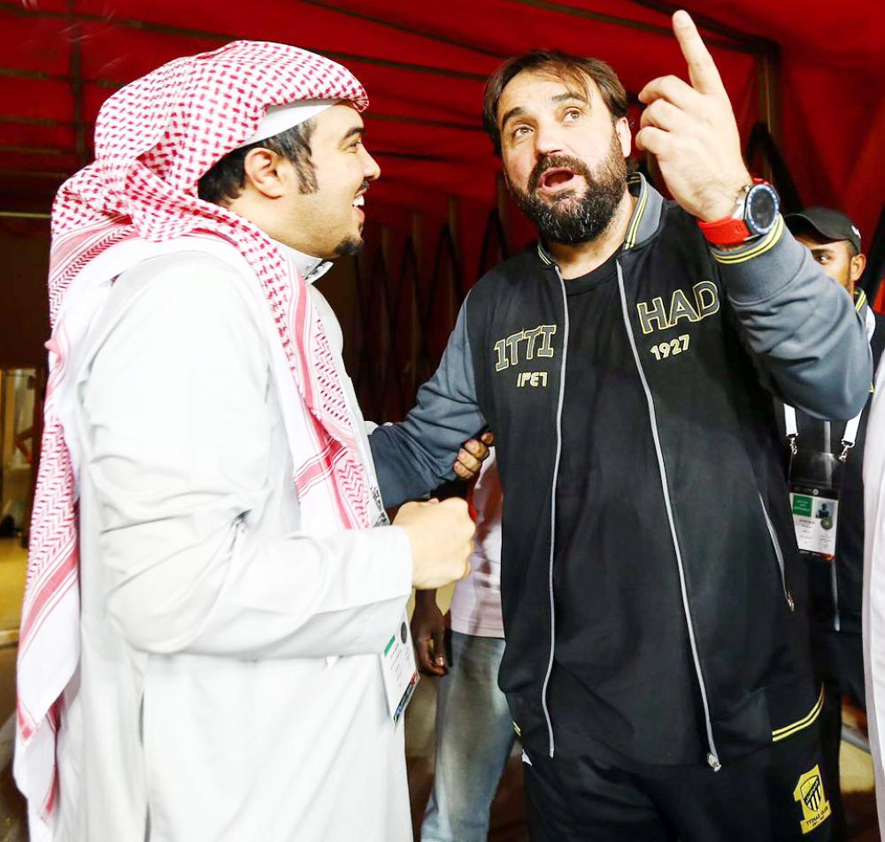 سييرا والصنيع في حديث جانبي على هامش مباراة الاتحاد والاتفاق في الكأس.