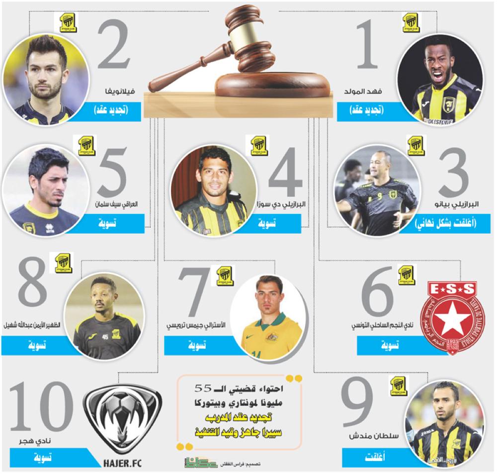 تلك الخطوات المتسارعة التي قطعتها إدارة الاتحاد برئاسة حمد الصنيع لإخراج «العميد» من أزمته التي تسبب فيها عدد من الإدارات السابقة، جسدت دعم رئيس الهيئة العامة للرياضة رئيس اللجنة الأولمبية العربية السعودية تركي آل الشيخ، الذي أسهم بشكل مباشر في حلها، بعد أن كادت تعرض عميد الأندية لعقوبات قاسية من قبل «فيفا»، إذ وصلت إلى 10 قضايا، أبرزها: البرازيلي بيانو (أغلقت بشكل نهائي)، البرازيلي دي سوزا (تسوية)، العراقي سيف سلمان (تسوية)، نادي النجم الساحلي التونسي (تسوية)، الأسترالي جيمس ترويسي (تسوية)، عبدالله شهيل (تسوية)، سلطان مندش (أغلقت)، نادي هجر (تسوية)، ولم يتوقف الحال عند هذا الحد، بل تم تجديد عقدي نجمي الفريق فهد المولد وزميله المحترف التشيلي فيلانويفا، والتوصل لاتفاق نهائي مع المدرب سييرا، وتبقى الإعلان النهائي فقط، وهذا العمل الجبار الذي تقوم به الإدارة الاتحادية شجع رئيس الهيئة العامة للرياضة تركي آل الشيخ على التوصل لاتفاق مع راع رسمي للنادي مقابل 60 مليوناً سنويا، وسيتم الإعلان عن ذلك في حفلة كبيرة في الفترة القادمة، كما لم تقف الإدارة الاتحادية مكتوفة الأيدي بسبب قرار منع التسجيل لفترتين، بل عملت على اتجاهين؛ الأول مخاطبة الفيفا مجددا للسماح بالتسجيل خلال فترة الانتقالات الشتوية الحالية، والثاني تأمين مستقبل النادي بعدد من المواهب كان في مقدمتهم الموهوب أحمد هادي بالخير (صانع لعب).