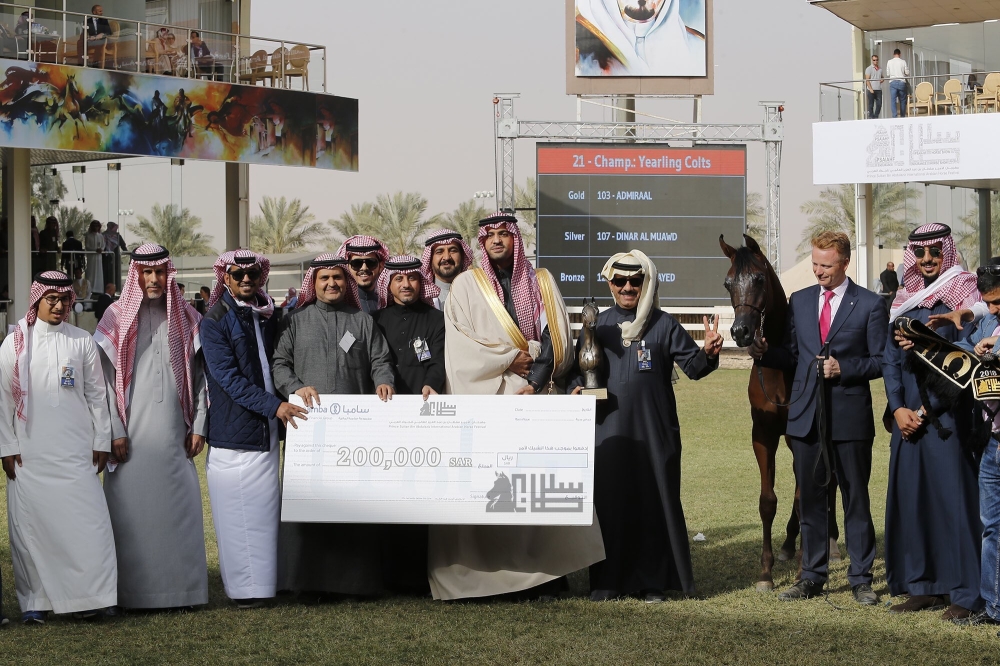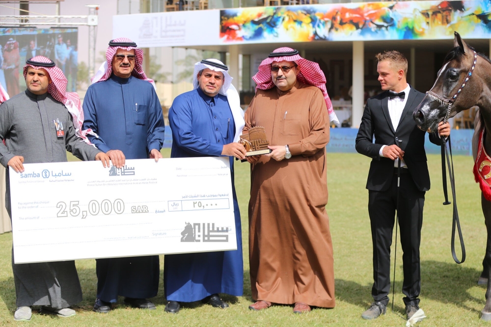 وكان الحفل الختامي لنهائيات المهرجان في نسخته الخامسة اختتم أمس، حيث جاءت نتائج الخيل السعودية الأصل والمنشأ على النحو التالي: «الفحول»: الذهب - «ليث ديراب» - لمربط العارض الفضة - «خريسان عذبة» لمربط عذبه البرونز - «نشمي ديراب» لمترك القحطاني «الأفراس» الذهب - «الماجدة» لمربط العارض الفضة - «جوهرة عذبة» لمربط عذبه البرونز - «فاتن العزيزية» لمبارك القحطاني المهرات: الذهب - «دهيمة عذبة» لمربط ابونصية.