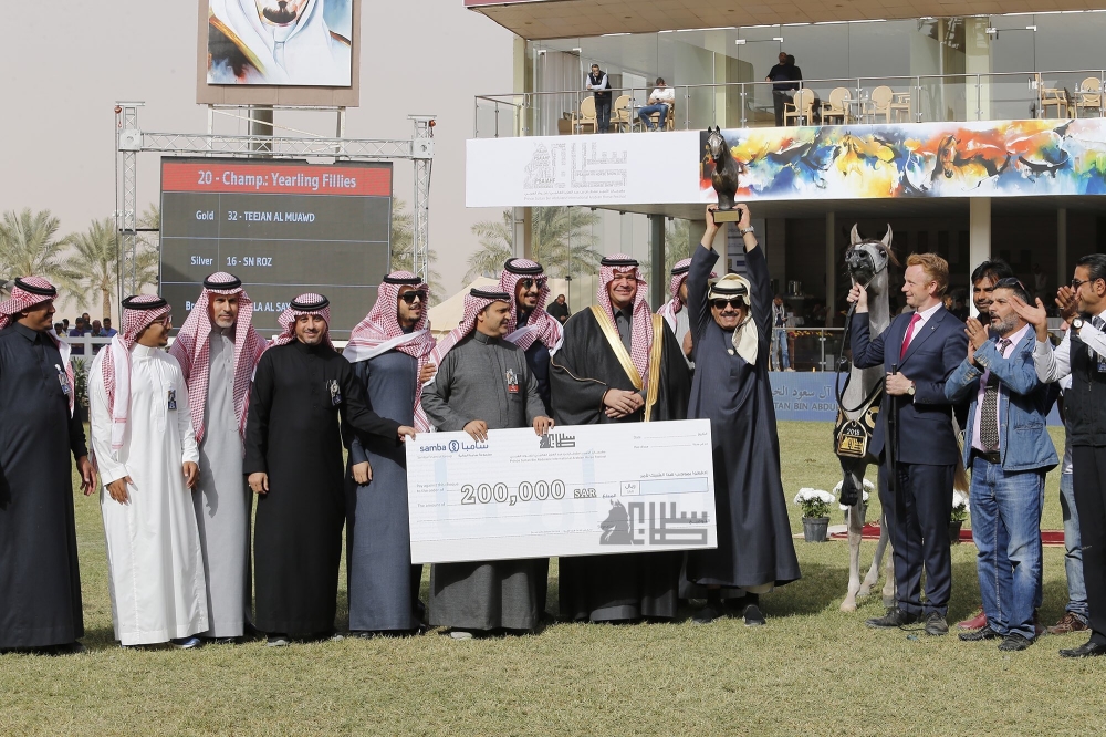 البرونز- «هيئة العارض» لمربط العارض. «الأمهار»: الذهب - «كاتب الجنادرية» لمربط المسرة الفضة - «غطاس العوجاء» لمربط العوجاء البرونز - «سلطان عذبة» وجاءت نتائج نهائيات فئة المهرات أعمار سنة على النحو التالي: الذهب- تيجان المعود - لمربط المعود الفضة - اس ان روز - لمربط السلمانية البرونز - حلا السيد - لمربط السيد بينما جاءت نهائيات فئة الأمهار عمر سنة على النحو التالي: الذهب - أدميرال - لمربط المعود الفضة - دينار المعود - لمربط العويضة البرونز - ماهر السيد - لمربط السيد.