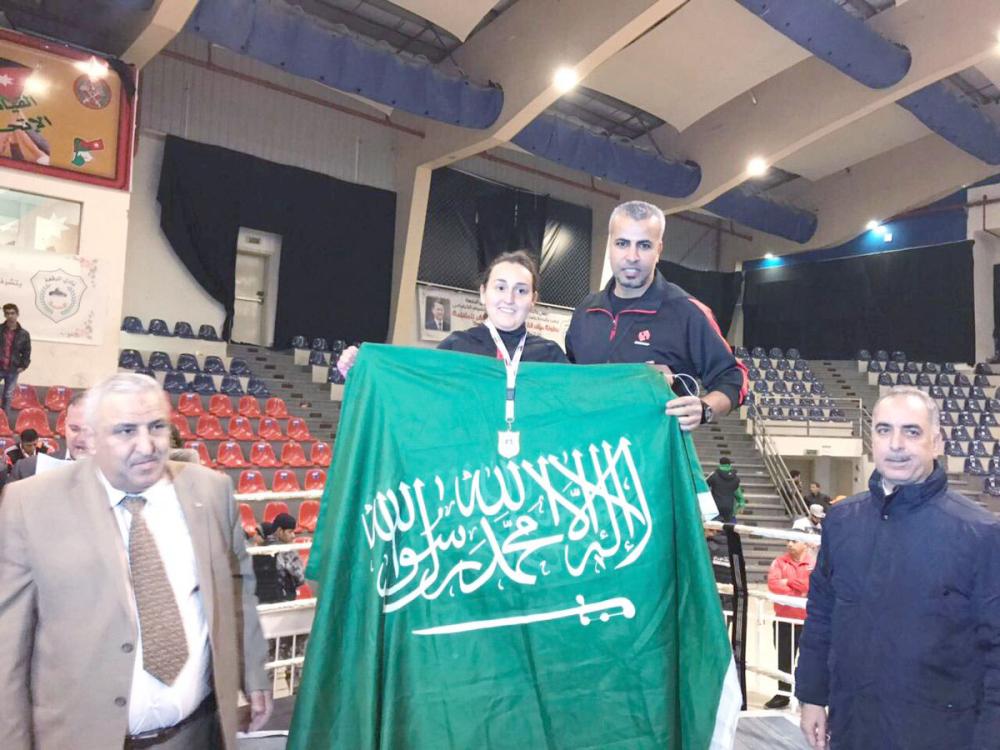 وحصلت الغامدي على الذهبية بعد فوزها على عدد من اللاعبات الأردنيات في منافسات وزن 65 كيلوغراما.