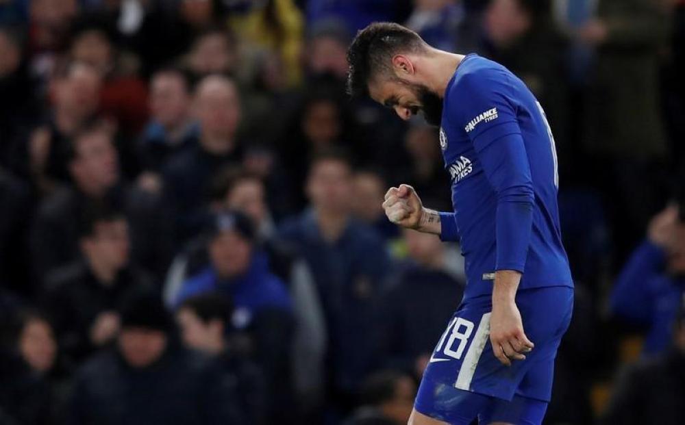 أوليفييه جيرو يحتفل بتسجيل هدفه أمام هال سيتي. (رويترز)