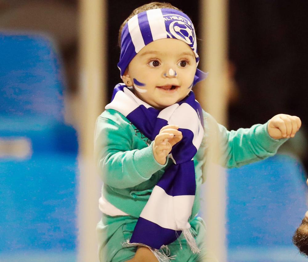 طفلة هلالية تواجدت في ملعب المباراة. (عكاظ)