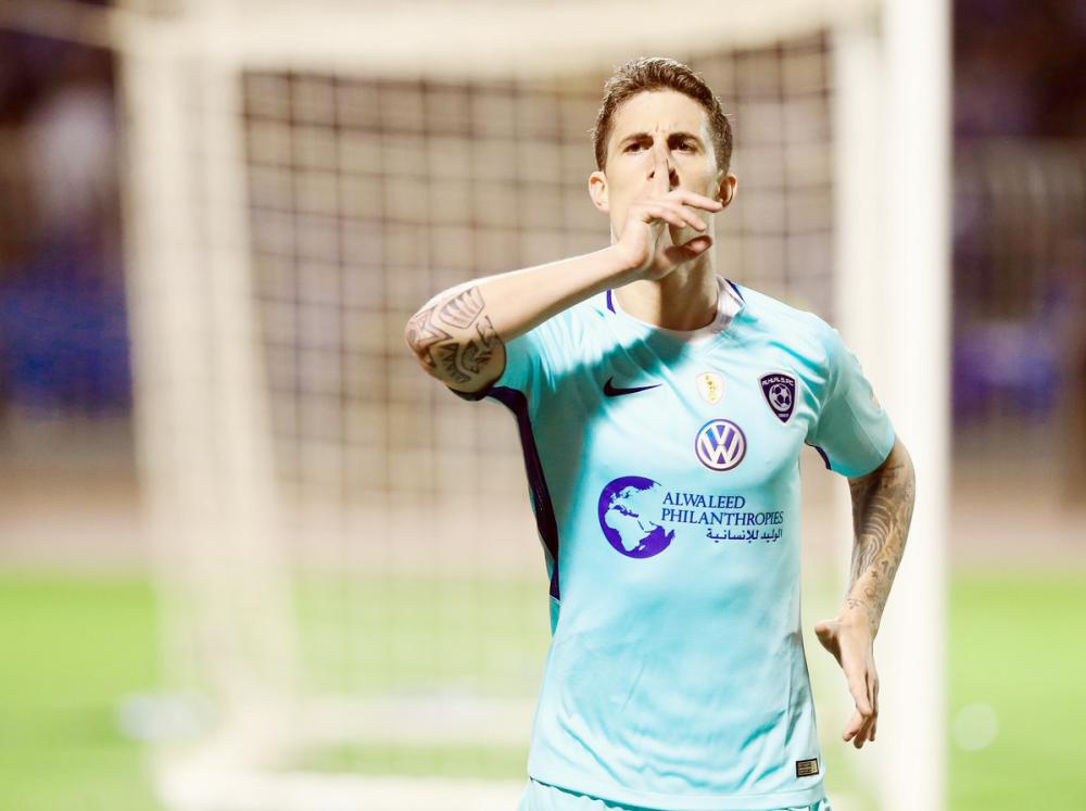 ميليسي ينطلق فرحا بهدف الفوز للهلال .(تصوير: عبدالعزيز السلامة)