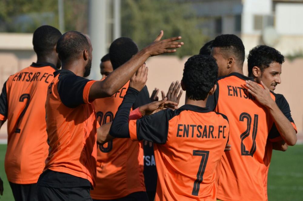 فرحة جماعية للاعبي فريق الانتصار بعد الفوز
