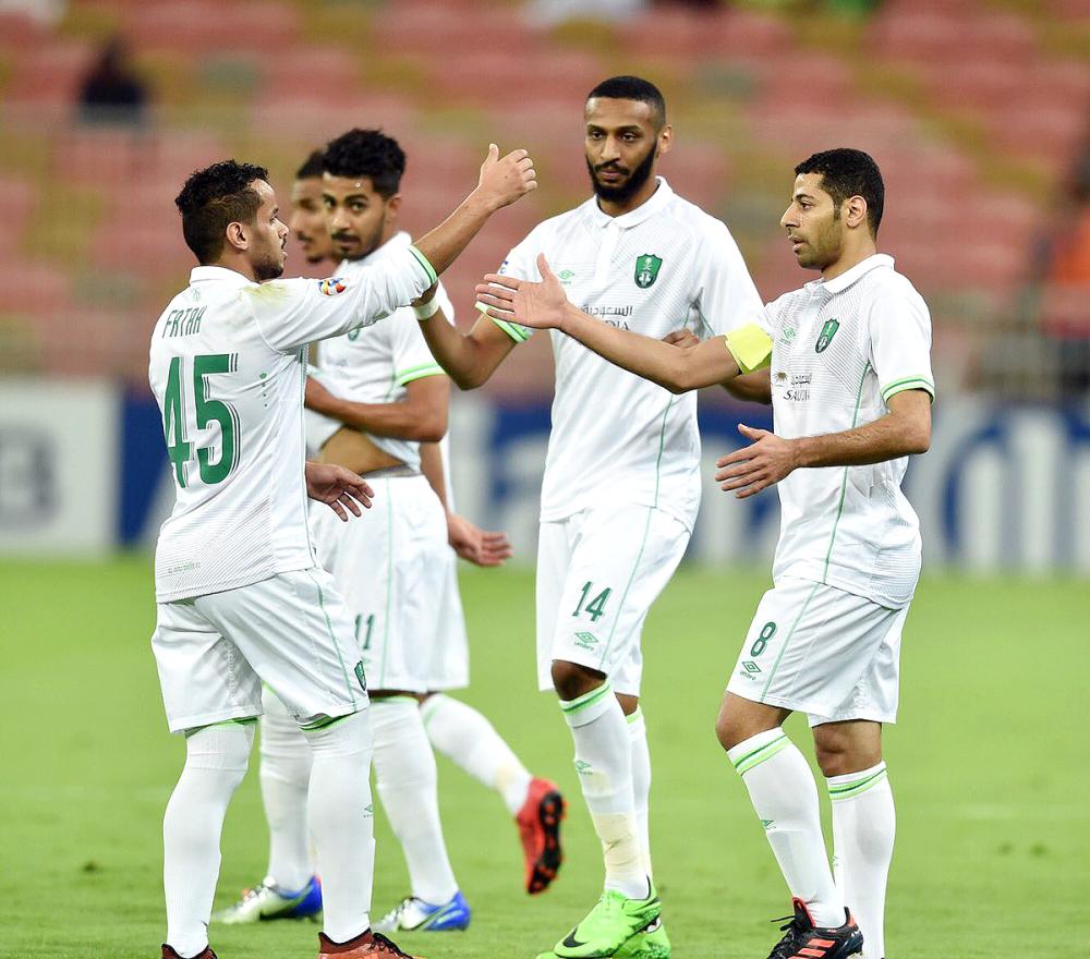 فرحة تيسير الجاسم بهدفه الأول في مرمى الجزيرة الإماراتي. (تصوير: عبدالغني بشير)