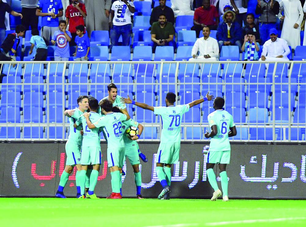 فرحة جماعية سابقة للاعبي الهلال. (عكاظ)
