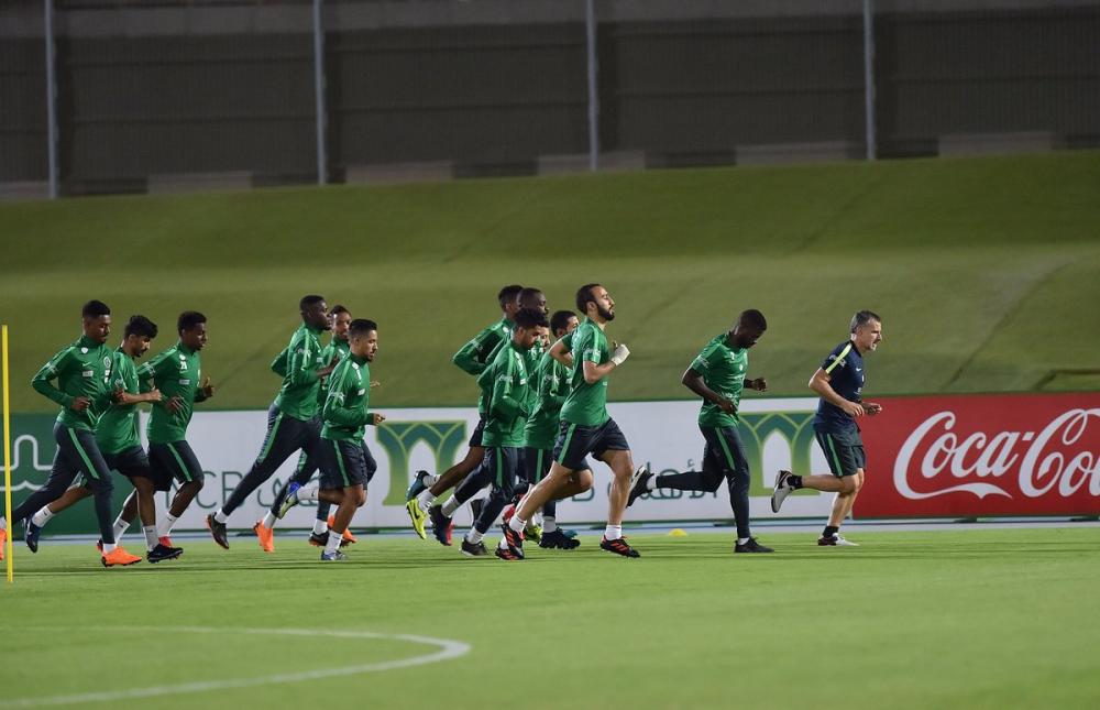 وخضع لاعبو الأخضر اليوم لفحوصات طبية من قبل الجهاز الطبي للوقوف على جاهزيتهم الصحية، حيث أجرى المنتخب أولى تدريباته اليوم على الملعب الرديف بمدينة الملك عبدالله الرياضية تحت إشراف المدير الفني خوان انطونيو بيتزي الذي بدأ التدريبات بتمارين الإحماء، ثم مران السرعات عبر مسافات متنوعة، في حين عمد الجهاز الفني إلى تخصيص تمارين استرجاعية لعدد من اللاعبين.