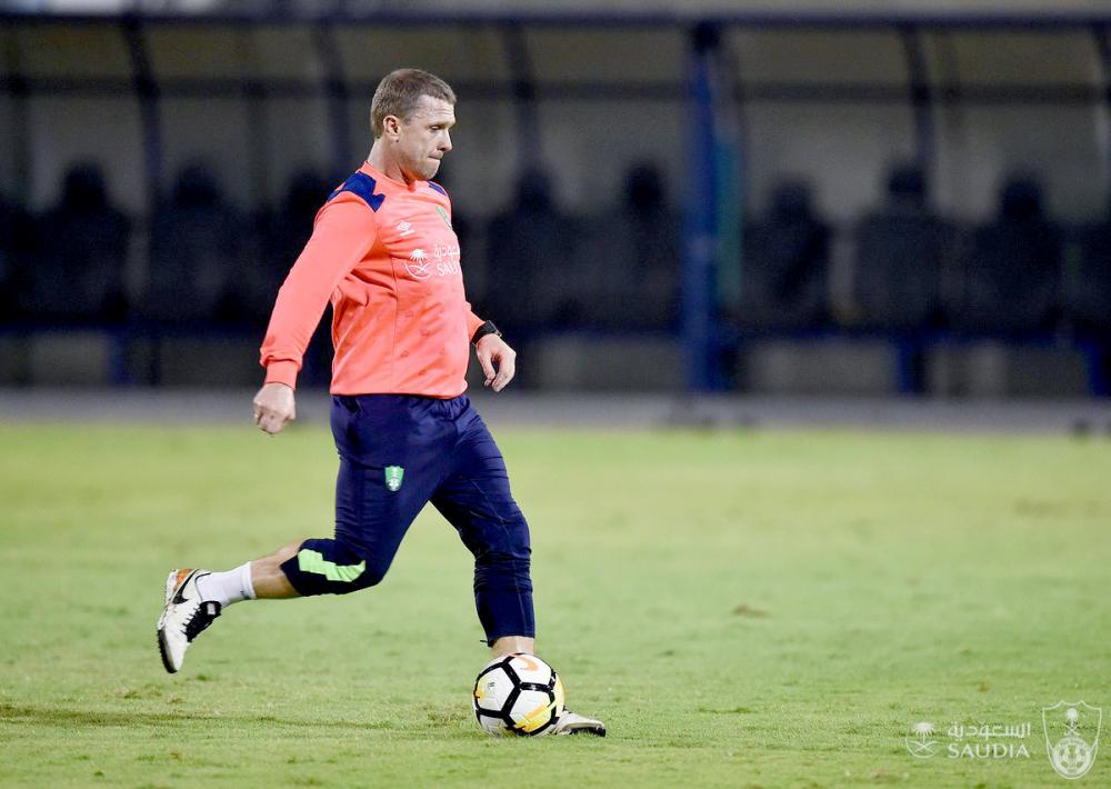 ريبروف خلال تدريبات الفريق الأهلاوي أمس.