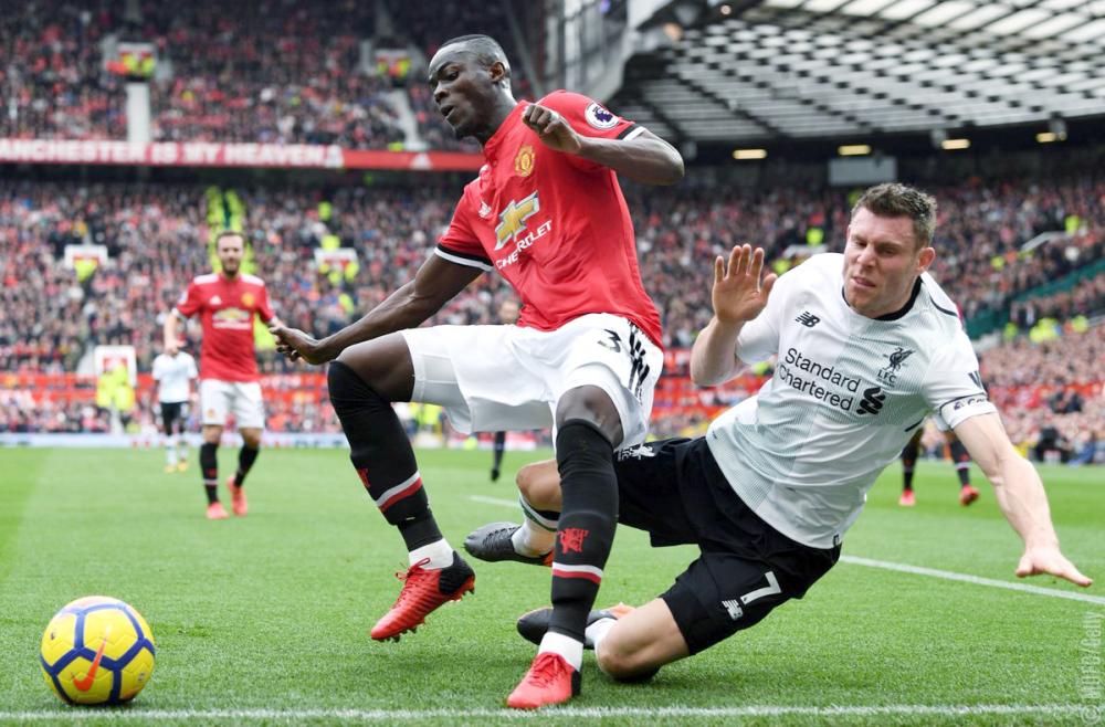 لاعب ليفربول جيمس ميلنر يعرقل نجم مانشستر يونايتد بوغبا.