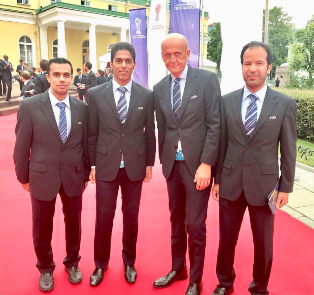 الإيطالي كولينا يتوسط طاقم الحكام السعودي.