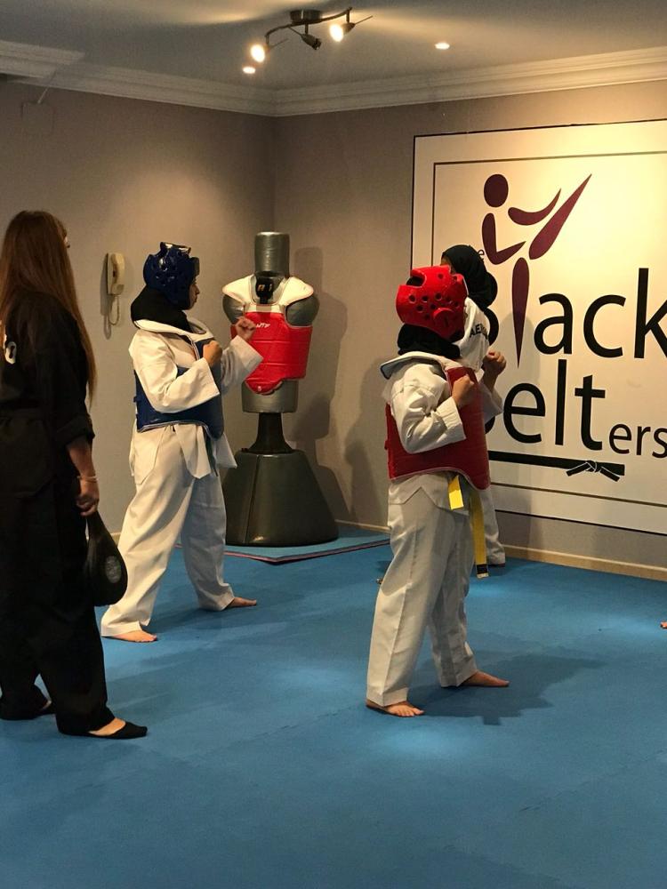 • أعطينا نبذة عن المها والتايكوندو.. أين كنتِ تتدربين؟ وكم المدة حتى حصلتِ بعدها على الحزام الأسود؟ وأين تجري اختبارات الحزام؟