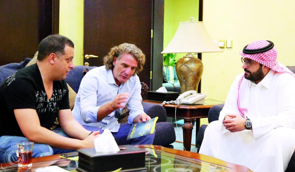 آل سويلم يناقش المدرب كارينيو حول مستقبل النصر. (عكاظ)
