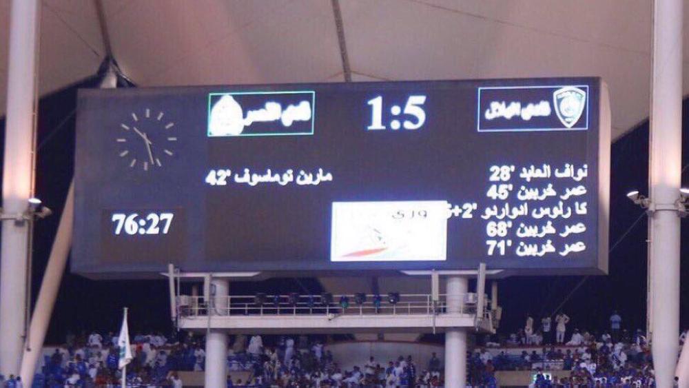 شاشة استاد الدرة والتي سجلت خماسية الزعيم على النصر الموسم الماضي.