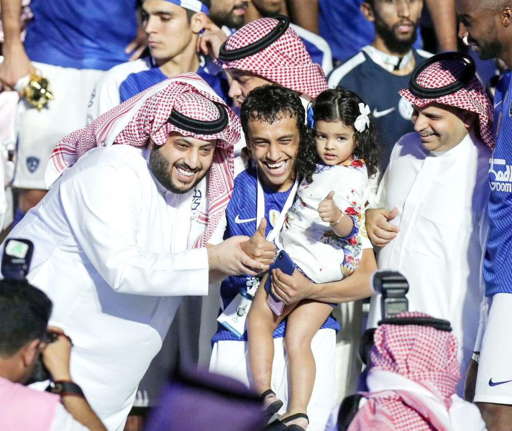 من جانبه، داعب رئيس هيئة الرياضة تركي آل الشيخ النجم الموهوب محمد الشلهوب لحظة تتويج الهلال بطولة الدوري، وذلك عندما صعد نجم الهلال للمنصة حاملاً ابنته البندري، والتقط «أبو ناصر» صورة تذكارية جمعته مع الشلهوب وابنته.