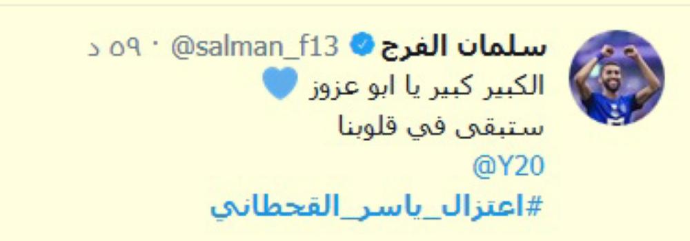 التائب: «أسطورة أخرى تعتزل كرة القدم، القحطاني قدم الكثير للمنتخب والهلال، ومن أفضل المهاجمين».
