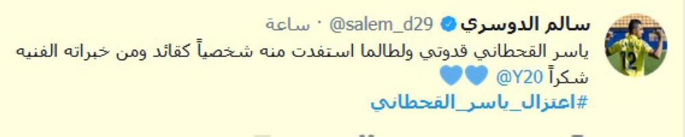 سالم الدوسري: «ياسر القحطاني قدوتي ولطالما استفدت منه شخصياً».