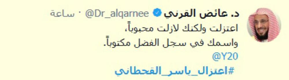 عائض القرني: «اعتزلت ولكنك لا زلت محبوباً، واسمك في سجل الفضل مكتوباً».