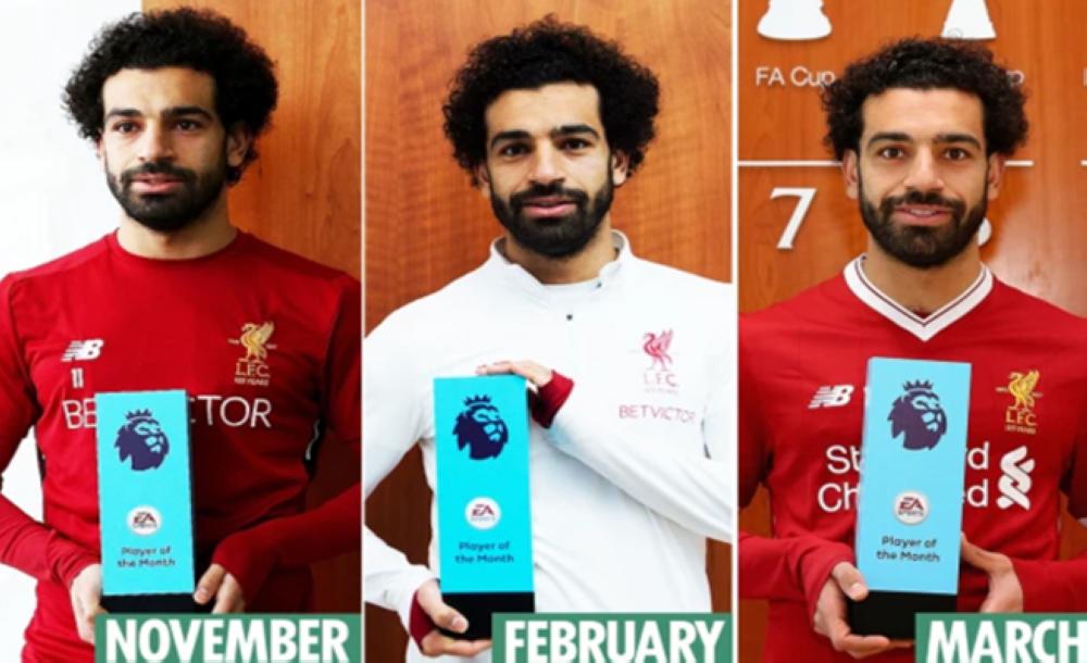 وفي إنجاز غير مسبوق، حقق صلاح إنجازاً فردياً، لم يسبق لأي من أساطير الدوري الإنجليزي الممتاز تحقيقه، بعدما أصبح أول لاعب يتوج بجائزة لاعب الشهر كأفضل لاعب في مسابقة «البريمرليغ» في 3 أشهر خلال موسم واحد. وذلك باختياره أفضل لاعب في نوفمبر ، ثم فبراير، وأخيراً مارس، ما يضعه على رأس القائمة في تاريخ المسابقة منذ انطلاق الدوري الإنجليزي الممتاز في 1992، ويؤكد علو كعبه واستحقاقه لينافس على لقب أفضل لاعب في البطولة.
