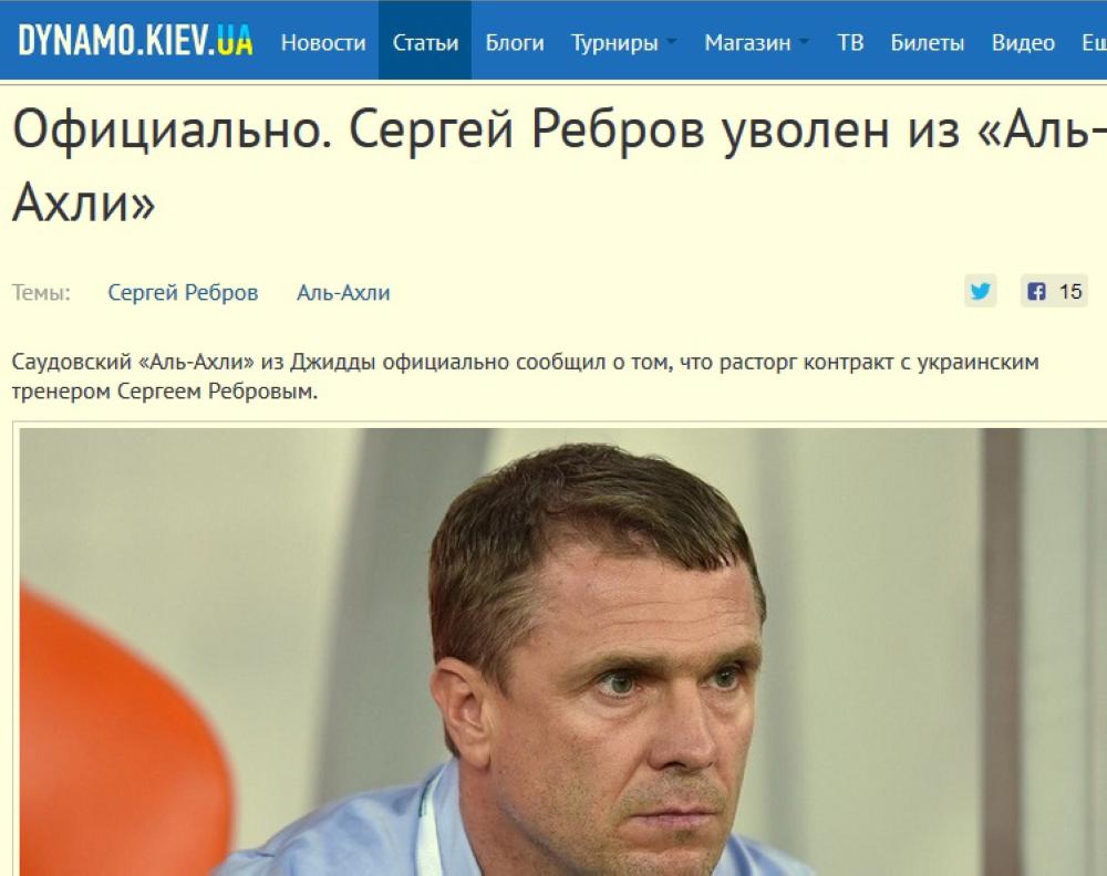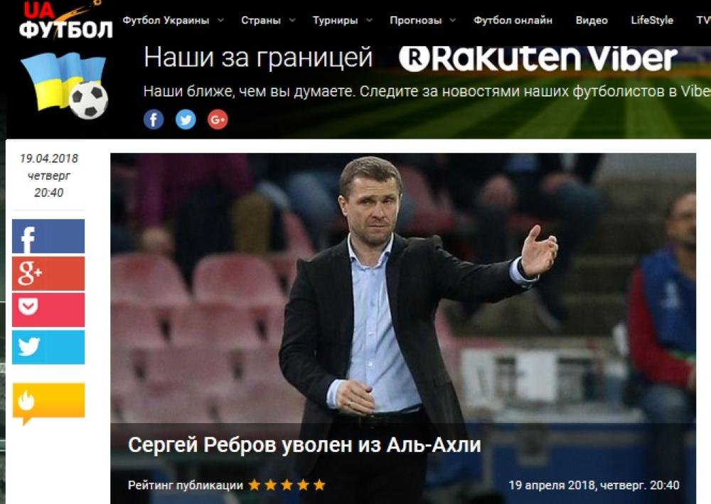 على صعيد الإعلام الأوكراني، تحدثت صحف محلية بأن قرار إقالة ريبروف لم يكن مفاجئا له شخصياً، كونه كان يعلم بذلك، خصوصا بعد ضياع لقب بطولة الدوري التي كانت بين الأيدي، لكن «تخبطاته الفنية» جعلته «كبش فداء». وأضافت الصحف: هل ريبروف راضٍ عن نفسه الآن، بعد إقالته من منصبه بصورة غير لائقة في تاريخه الكروي والتدريبي؟ وحول مصيره قالت الصحف الأوكرانية: ما زال غامضاً وقد تطول مدة قيادته لأي ناد يرغب به، خصوصا بعد أن فشل مع النادي الأهلي.