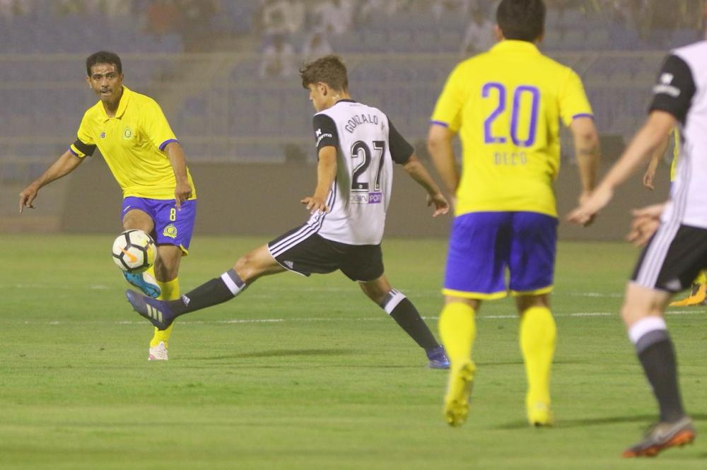 وأقيم الاحتفال (الأربعاء) بلقاء جمع النصر بفريق فالنسيا الإسباني، بحضور نجوم العالم يتقدمهم البرازيلي رونالدينهو والإيطالي دلبيرو والأرجنتيني هرينان كريسبو والبرتغالي ديكو.