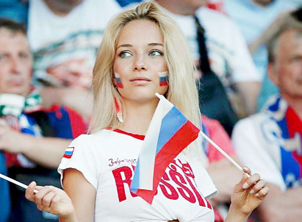 مشجعة روسية خلال مؤازرة منتخب بلادها.