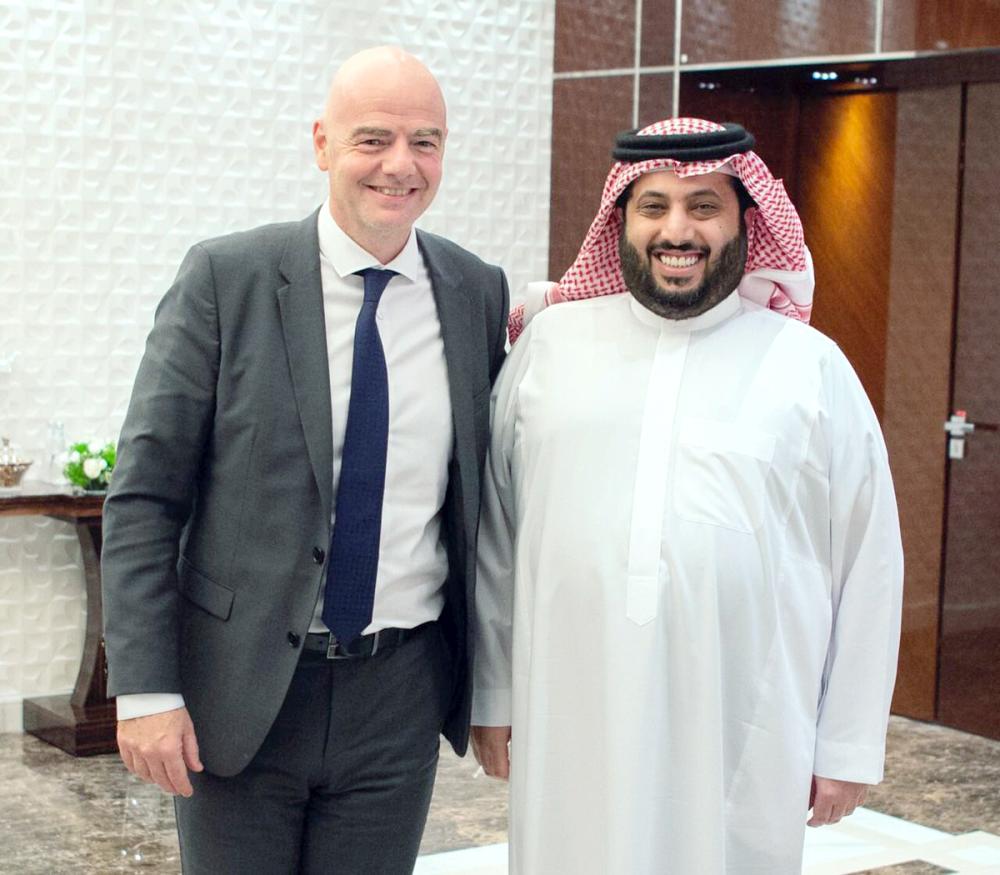 وبث رئيس هيئة الرياضة تركي آل الشيخ عبر حسابه الرسمي في موقع التواصل الاجتماعي تويتر تغريدة جاء نصها: «قبل قليل، سعدت بلقاء رئيس الاتحاد الدولي، جياني إنفانتينو في جدة، اجتماع مهم ومثمر جداً».