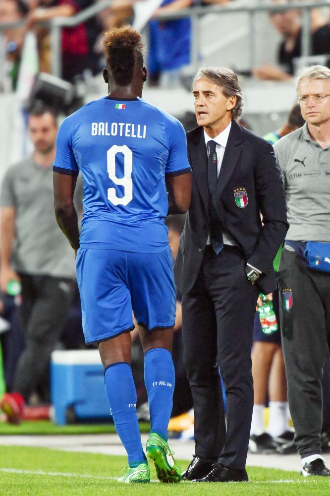 وفي أول تشكيلة له بعد تعيينه خلفاً لجانبييرو فنتورا الذي أقيل من منصبه عقب فشل إيطاليا في التأهل إلى كأس العالم للمرة الأولى منذ 60 عاماً، قرر مانشيني استدعاء مهاجم نيس الفرنسي ماريو بالوتيلي الذي كان عند حسن ظنه بتسجيله الهدف الأول لبلاده.
