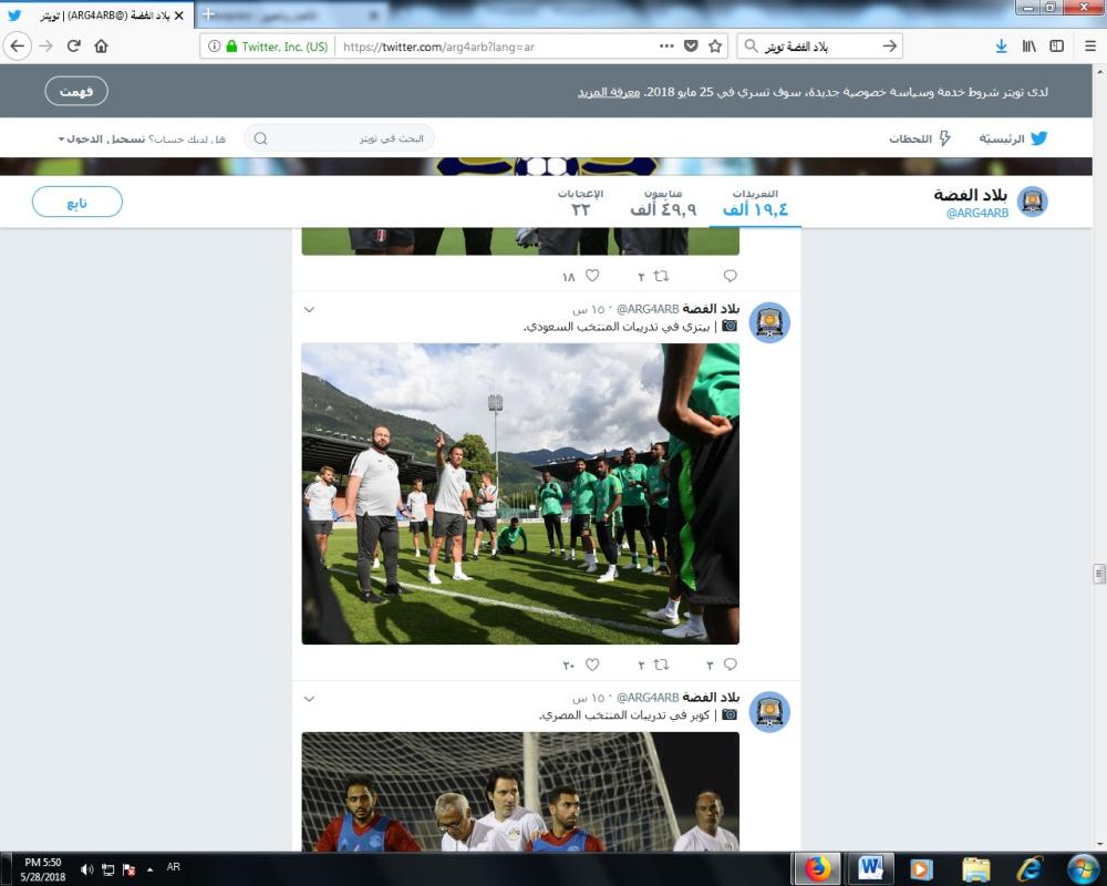 ونشر الحساب 5 تغريدات مختلفة يظهر فيها المدربون الخمسة خلال الحصص التدريبية لمنتخباتهم، إذ بدأها بصورة لمدرب المنتخب المصري كوبر أثناء تدريبات منتخب الفراعنة. ورصد في صورة أخرى مدرب المنتخب السعودي ابن التانجو خوان أنطونيو بتزي وهو يوجه لاعبي الأخضر في معسكرهم المقام بسويسرا قبيل المباراة الإعدادية ضد المنتخب الإيطالي.