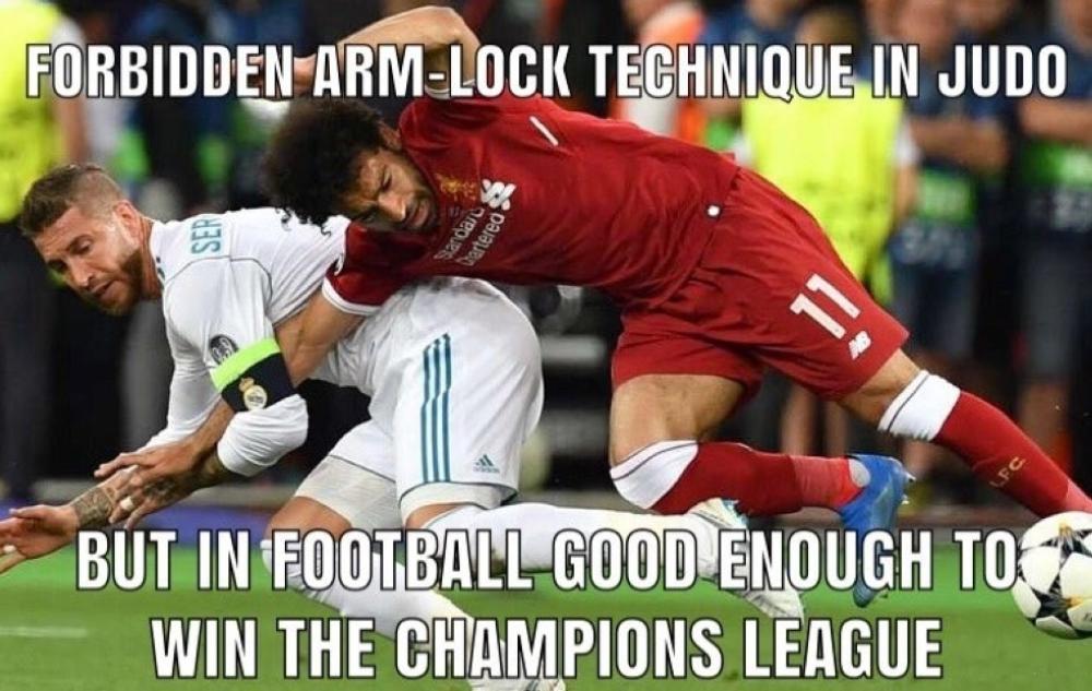 استغرب اتحاد الجودو الأوروبي عدم احتساب مخالفة على لاعب ريال مدريد الإسباني سرجيو راموس جراء الخشونة التي قام بها ضد لاعب ليفربول الإنجليزي محمد صلاح خلال المباراة النهائية على كأس أوروبا للأندية الأبطال، التي فاز بها فريق الريال بـ3 أهداف مقابل هدف للفريق الإنجليزي، جاءت بعد خروج صلاح من الملعب متأثراً بإصابته، بعد أن كان ليفربول مسيطرا على المباراة وقت وجود صلاح.