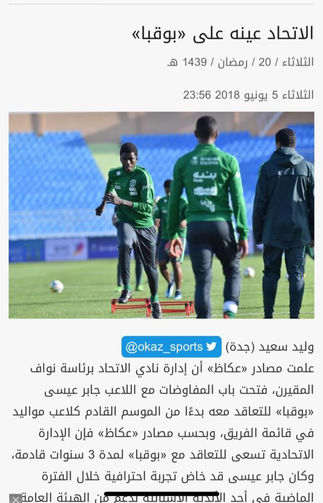 تأكيداً لما نشرته «عكاظ».. «بوقبا» اتحادي