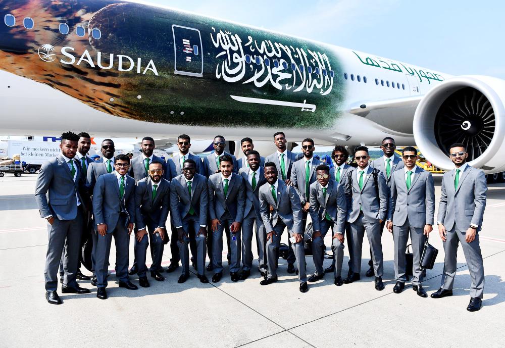 بعثة المنتخب السعودي أثناء المغادرة من ألمانيا إلى روسيا.