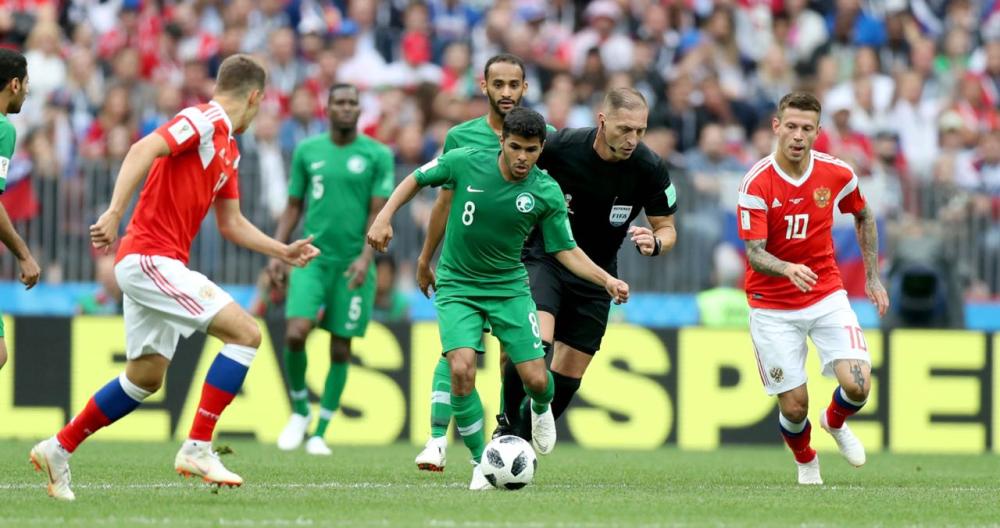 لم يكن أكثر المتشائمين يتوقع أن يخرج الأخضر السعودي بخسارة ثقيلة أمام المنتخب الروسي في افتتاح نهائيات كأس العالم 2018، فلم يظهر منتخبنا الوطني بمستواه المعروف وخسر بخماسية نظيفة سجلها كل من: يوري كازينسكي (الدقيقة 12)، دينيس تشيريشيف (الدقيقة 43، 90)، أندري ايشينكو (الدقيقة 71)، ألكسندر جولوفين (الدقيقة 95).