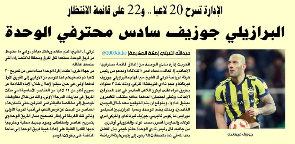 إدارة الوحدة تصادق على انفراد«عكاظ» وتسرح 20 لاعباً