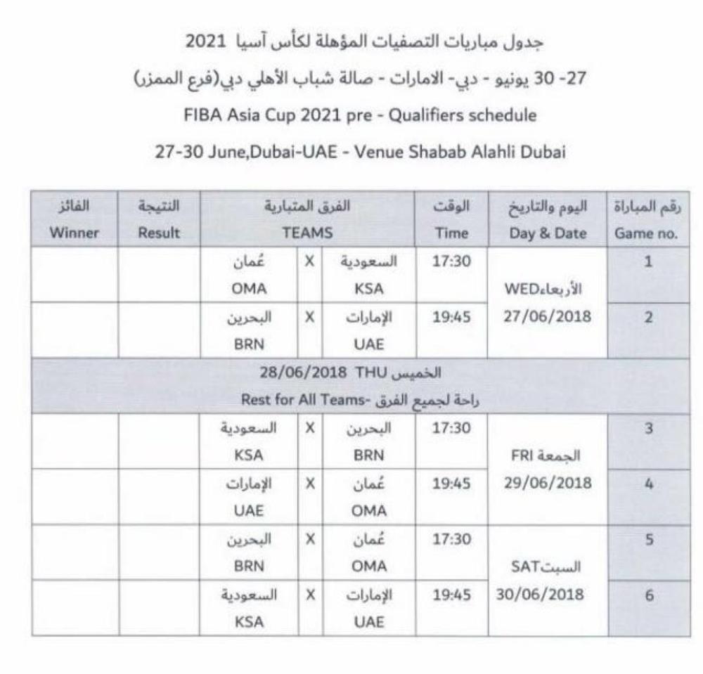 يفتتح اليوم (الأربعاء) أخضر السلة مشواره، في تصفيات المرحلة الثانية المؤهلة لكأس آسيا 2021، أمام المنتخب العماني، وذلك على صالة النادي الأهلي في دبي.